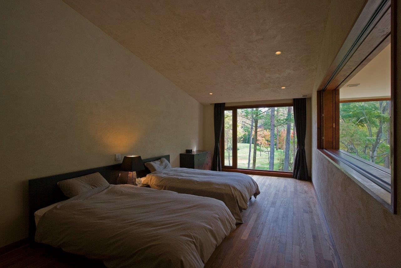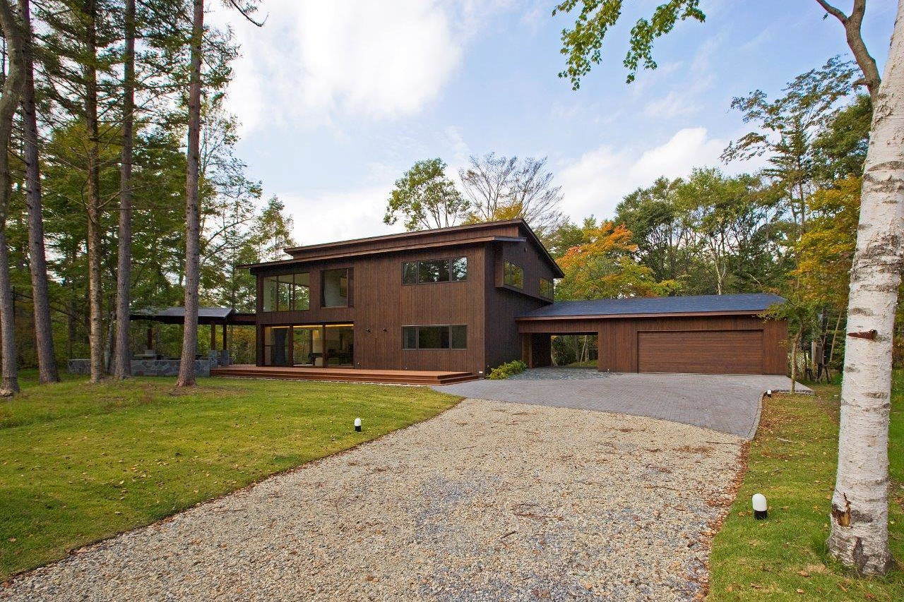 森を囲い込む平屋の別荘