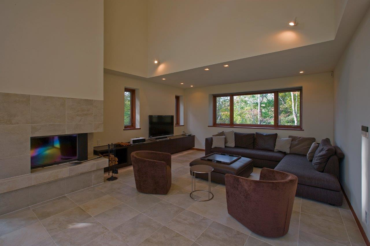 吹抜け大空間リビングのある別荘