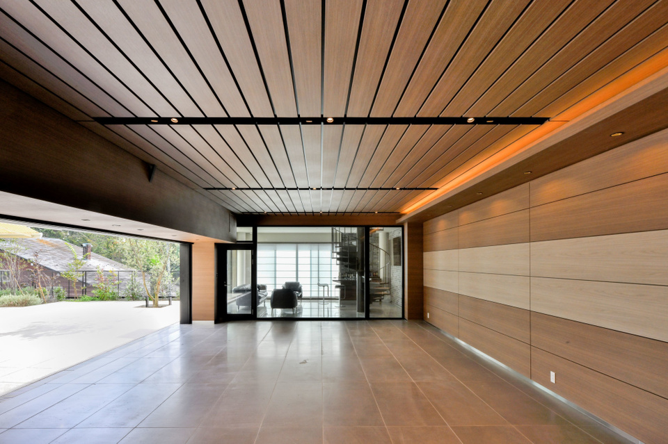 リビングと外部を繋ぐサッシレスの別荘